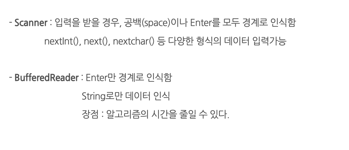 알고리즘 문제를 풀 때는 시간이 중요하기 때문에 속도가 빠른 BufferReader를 많이 사용하곤 합니다.