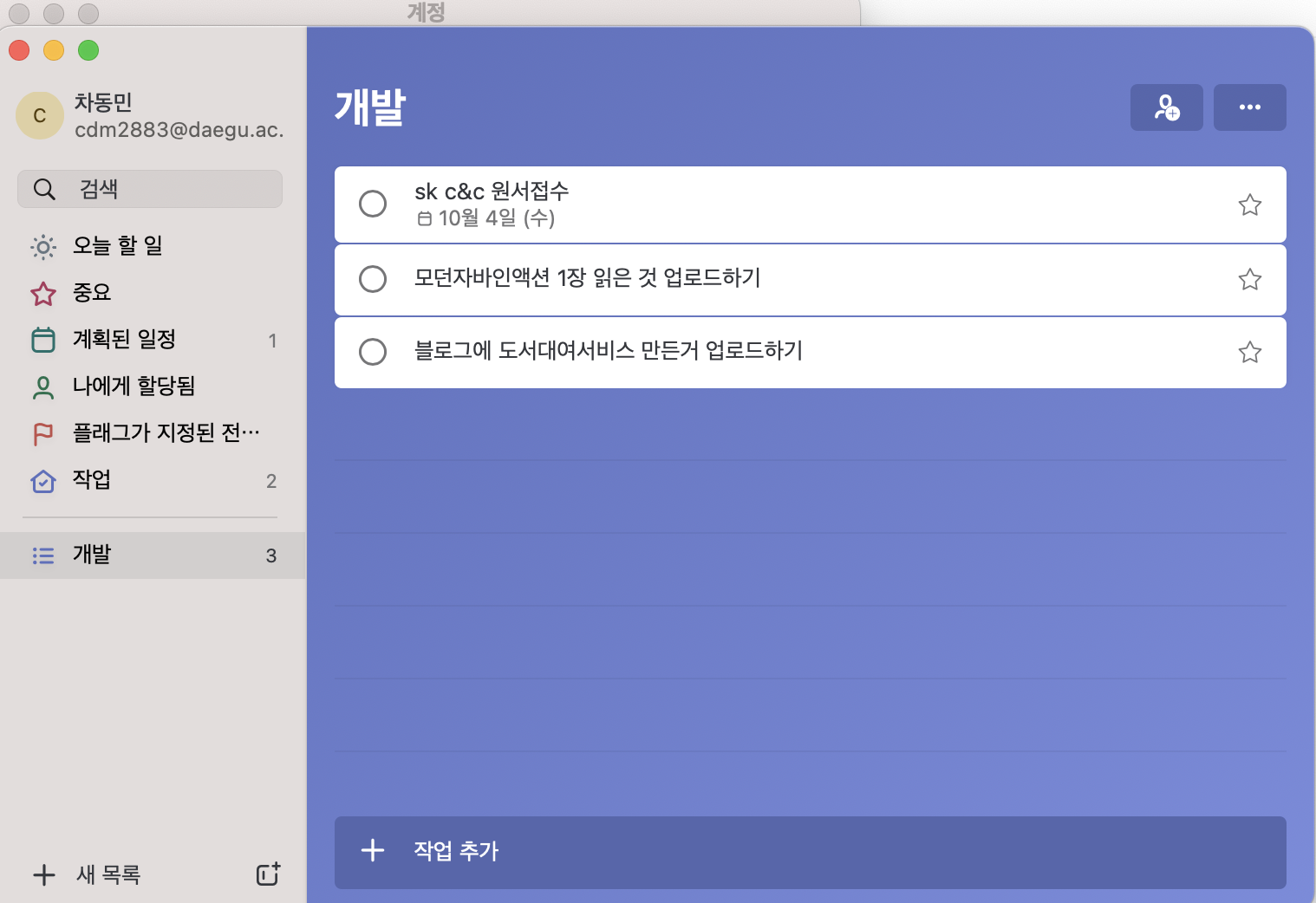 ms todo 어플을 다운로드 해서 체계적으로 계획 세워서 공부할 예정이다.